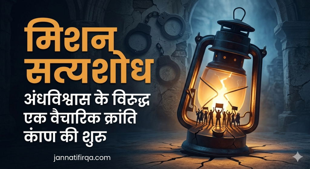 जन्नतिफ़िरक़ा संगठन के ‘मिशन सत्यशोध’ का मुख्य उद्देश्य समाज में व्याप्त अंधविश्वास, पाखंड और रूढ़िवादिता की जड़ों को तर्क और तथ्यों के आधार पर हिलाना है।हमारा मानना है कि एक स्वस्थ समाज का निर्माण तभी संभव है जब हर व्यक्ति मानसिक गुलामी से मुक्त हो और विवेक की शक्ति का उपयोग करे। इस मंच के माध्यम से हम उन कुरूतियों पर प्रकाश डालेंगे जो धर्म और परंपरा के नाम पर समाज को गुमराह करती हैं।आइए, इस सत्य की खोज में हमारा साथ दें और एक जागरूक समाज की नींव रखें।