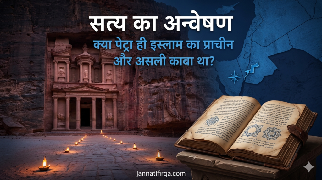 जन्नतिफ़िरक़ा संगठन के ‘मिशन सत्यशोध’ के अंतर्गत आज हम उस ऐतिहासिक सच पर चर्चा करेंगे जिसे सदियों से पर्दों के पीछे रखा गया है। आधुनिक शोध और पुरातात्विक प्रमाण (Archaeological Evidence) एक चौंकाने वाली सच्चाई की ओर इशारा करते हैं।1. काबा और पेट्रा का संबंध:इतिहासकारों और शोधकर्ताओं ने यह साबित किया है कि शुरुआती इस्लाम के समय की मस्जिदों के ‘किबला’ (नमाज़ की दिशा) मक्का की तरफ नहीं, बल्कि पेट्रा (Jordan) की तरफ थे। मोहम्मद साहब के समय का वास्तविक भौगोलिक केंद्र पेट्रा ही प्रतीत होता है, जिसे बाद के कालखंडों में बदला गया।2. इस्लाम का असली रंग: नीला:एक और महत्वपूर्ण तथ्य जो अक्सर छुपाया जाता है, वह है शुरुआती इस्लाम का नीला रंग। आज जिसे हम हरा देखते हैं, वह बाद का बदलाव है। प्राचीन काल के इस्लामी प्रतीकों और कलाकृतियों में नीले रंग का गहरा महत्व और आधार मिलता है, जो इसकी जड़ों को और अधिक प्राचीन सभ्यताओं से जोड़ता है।निष्कर्ष:हमारा उद्देश्य किसी की भावनाओं को ठेस पहुँचाना नहीं, बल्कि उन दबे हुए ऐतिहासिक तथ्यों को सामने लाना है जो तर्क और प्रमाणों की कसौटी पर खरे उतरते हैं। सत्य की इस खोज में तथ्यों का सामना करना ही ‘सत्यशोध’ है।